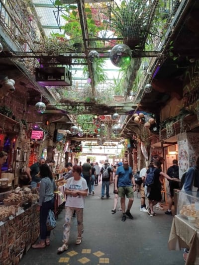 Our Airbnb was in a courtyard on Kazinczy Steet, a prominent street dubbed "Street of Culture" in Pest's Jewish Quarter and known to be a popular nightlife haunt ever since the revival of the ruin bars. As a matter of fact, the very first ruin bar in Budapest, Szimpla Kert, is located on this street just a few doors down from where our apartment was!