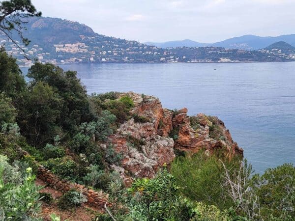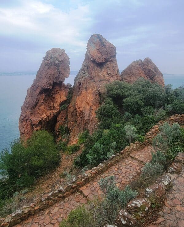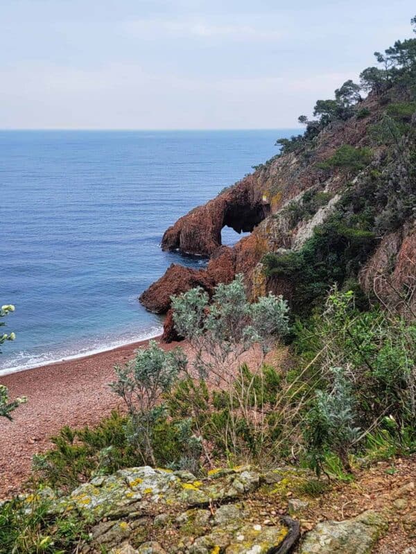 Théoule-sur-Mer is a tranquil and scenic village, known for its red mountain rocks and sandy beaches. It was pouring rain on-and-off while we were exploring the area. We didn't actually visit the village, but enjoyed the beautiful rocky coastline, and walked down to the beach.