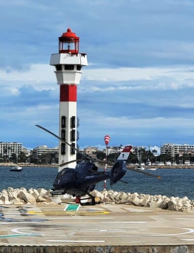 Cannes is a city with lots of character, a mix of high-end stores and restaurants alongside old architecture. We passed a jewelry store displaying a set of earrings with a price tag of €27,500 ($39,500)! All along the shore is a beautiful beach with a boardwalk, a nice walk but a little crowded with black suits! We also enjoyed walking the pier to the lighthouse, where we saw a helicopter making a tricky landing to drop off a VIP.