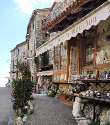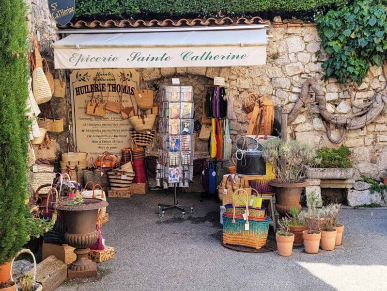 The village has so much character, with its old stone houses and funky art. The many colorful shops were selling perfume, glass, pottery, and yummy delicacies like nougat and honey spiced bread.