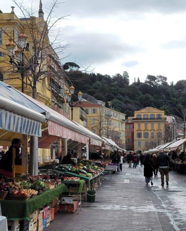 On our drive to Nice it was pelting down rain, and as you'll see from our photos, the two days we spent in Nice were a little misty and wet! We really enjoyed walking through the Vieux Nice (Old Town), which was pedestrian-only and very colorful, with narrow windy streets. Nice is known for its extensive daily flower market, plus fresh produce, local foods and delicacies, beautiful woodwork, cheeses and perfumes.