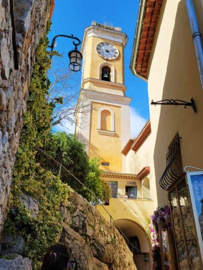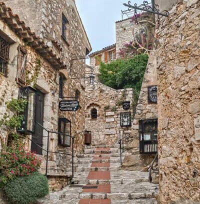 Èze is divided into the medieval Èze Village on the hilltop, and "Èze-sur-Mer" which is the beach area below. Èze village is stunning, and gives the appearance that it is clinging to the cliff edge above the Mediterranean Sea.