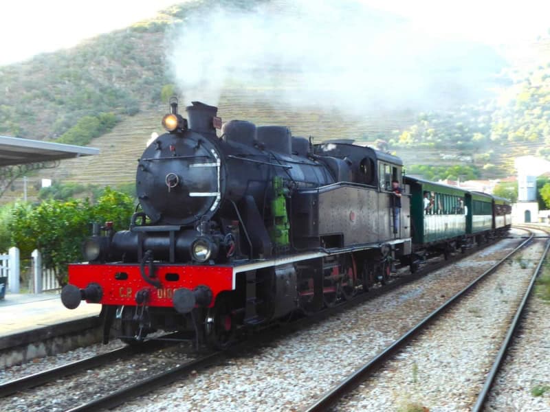 The train station in Pinhão is beautifully decorated with the Portuguese azulejo tiles. And no, we didn't arrive on the Douro Historical Train shown below! This is a steam locomotive with five historical carriages that runs along the banks of the River Douro through the villages of Régua, Pinhão and Tua.