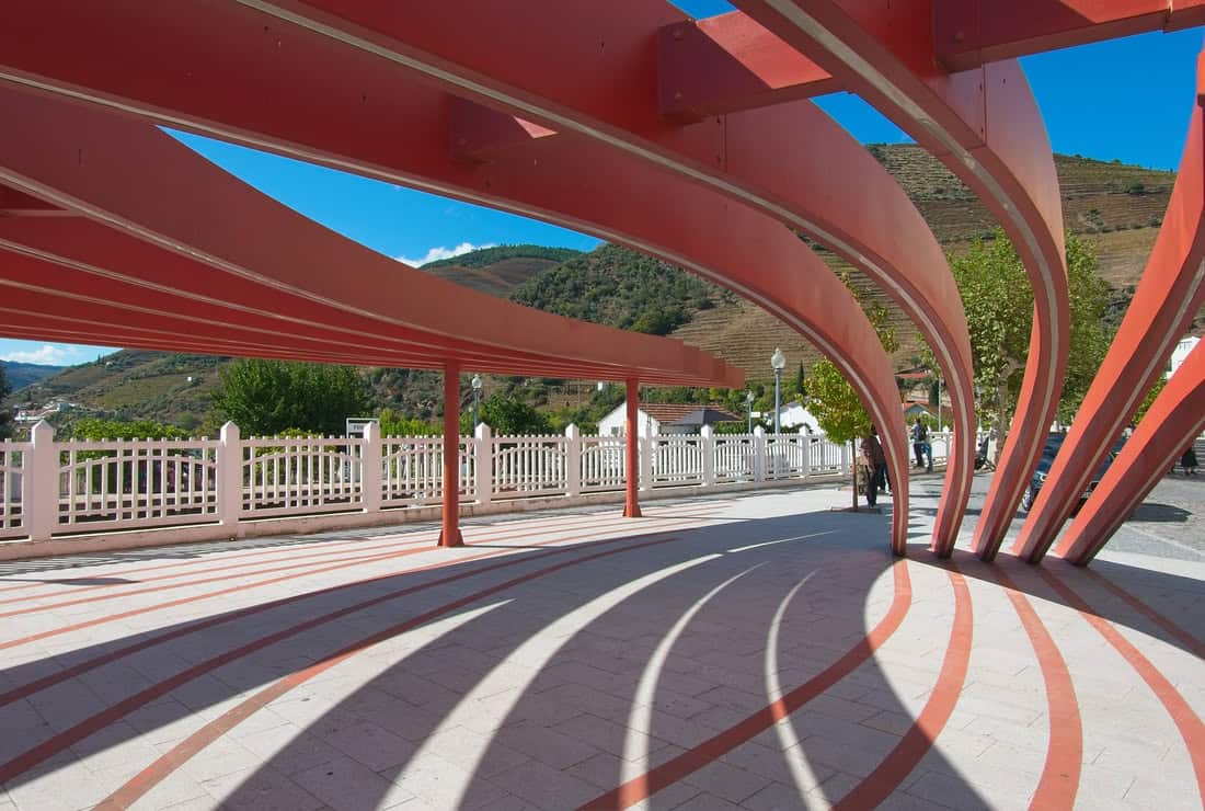 Pinhão is somewhat eclectic with its modern statues mixed in with the stone farm houses and pink buildings.