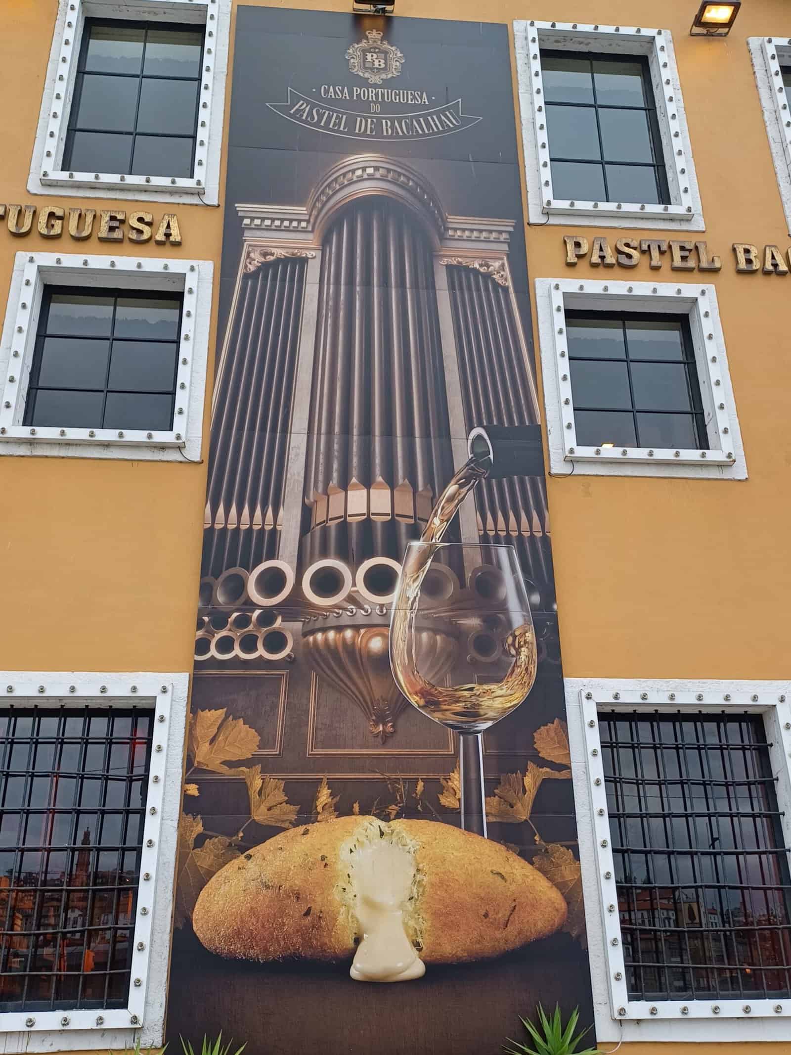 The photos to the left and right are of the Casa Portuguesa restaurant where they serve Pastel de Bacalhau. This is a pastry pocket filled with cod and cheese, and is a Portuguese specialty. The sign on the front of the building is huge! When we first entered, there was a musician playing the pipe organ.
