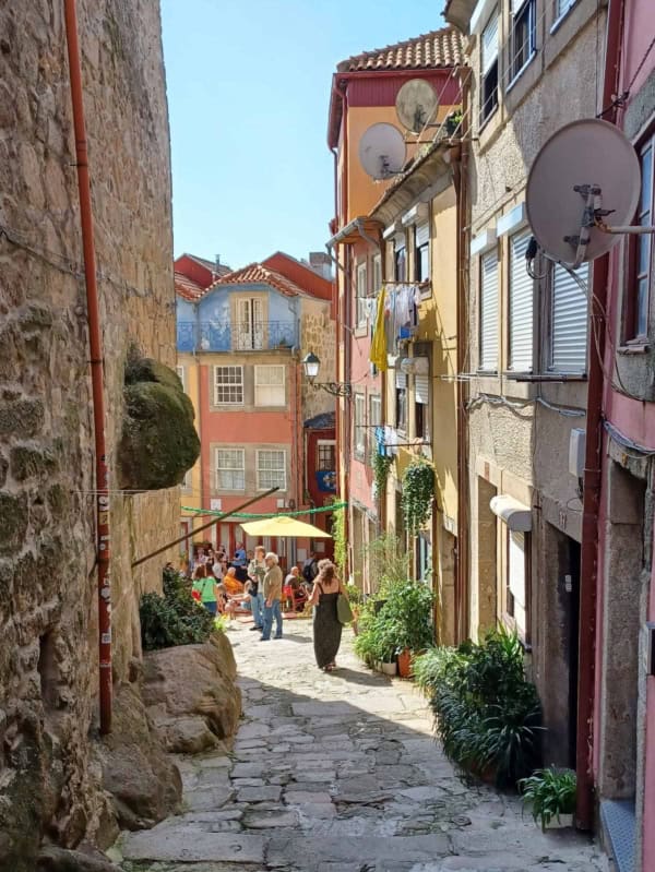 Well, if you've checked out my other travel pages, you'll know that I can't resist walking down narrow alleys! And Porto provided plenty. Some buildings and homes were made of stone and others painted in a variety of colors. Even in the narrower alleys, the restaurants would place tables on both sides of the alley.