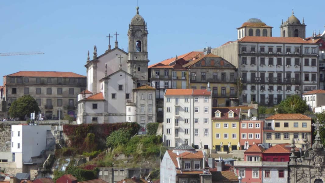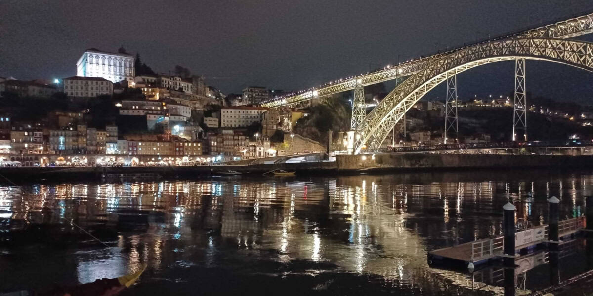 The day and night photos to the left and right are of a former monastery in Vila Nova de Gaia, situated on an outcrop overlooking the Dom Luís I Bridge and the historic center of Porto.